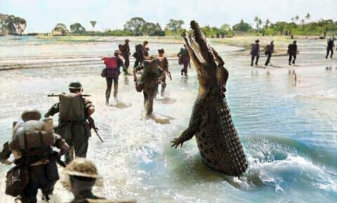 Выжившие рассказывали холодящие душу истории о своих товарищах, которые попались крокодилам, и один из них написал: «... неясные тревожные звуки вращающихся крокодилов создавали какофонию ада...». Они очень быстрые. Более того, известны факты, когда эти хищники выходили в океан и нападали на акул, которые оказывались беспомощными в схватке с этим гигантом.