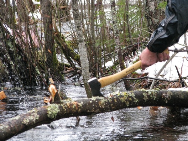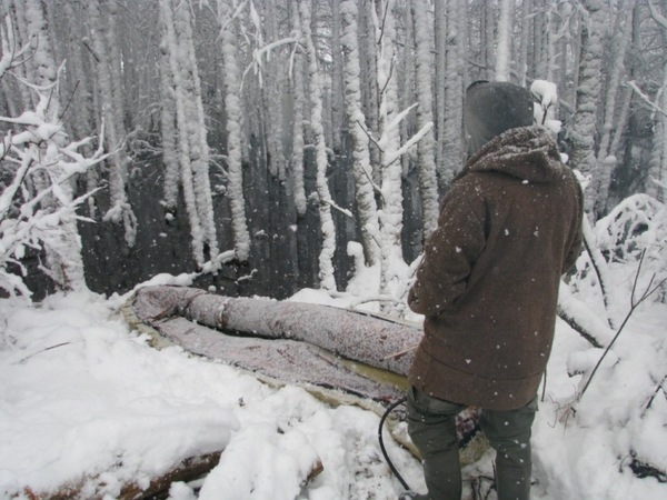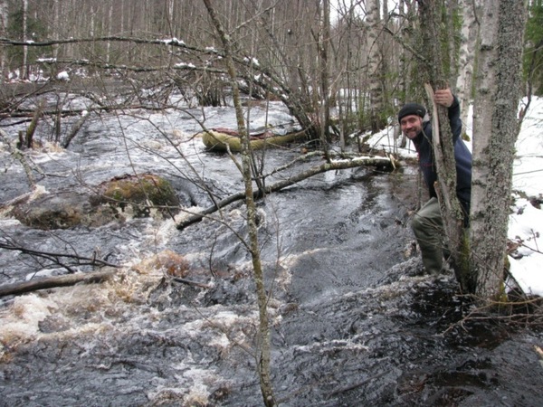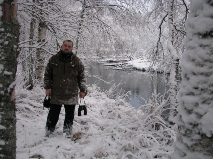 Пошли вдвоем с Гришей и решили, как обычно, самый ближний капкан проверить в конце маршрута - он у меня на другом берегу реки стоит и пробираться к нему сложно.
