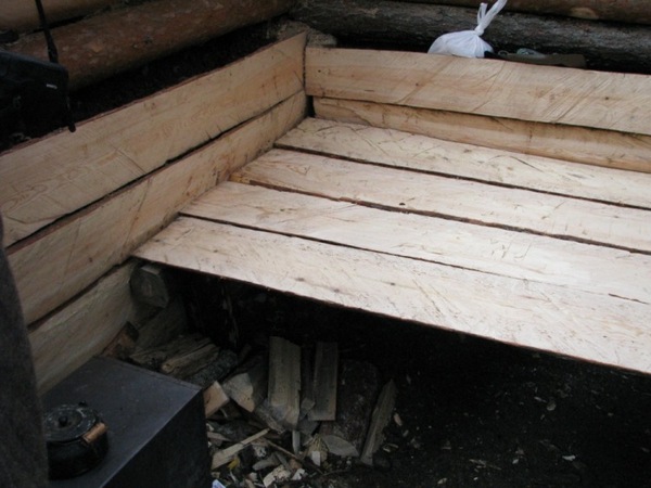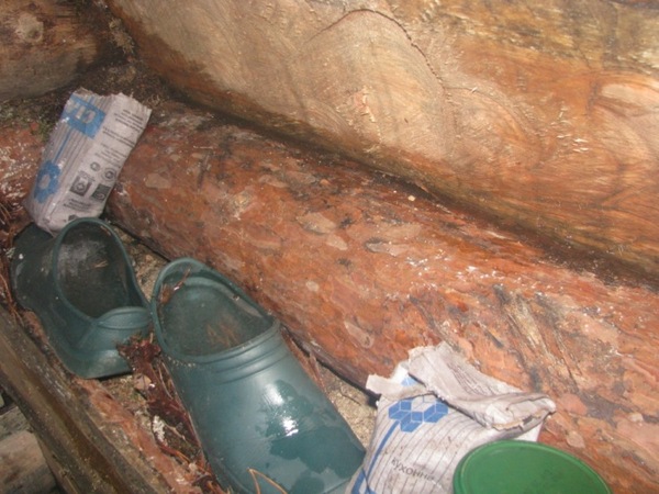 Нужно будет в следующий приезд забрать досками участки открытого песка, что бы не сыпался на нары, сделать полки и вешалки в удобных местах.