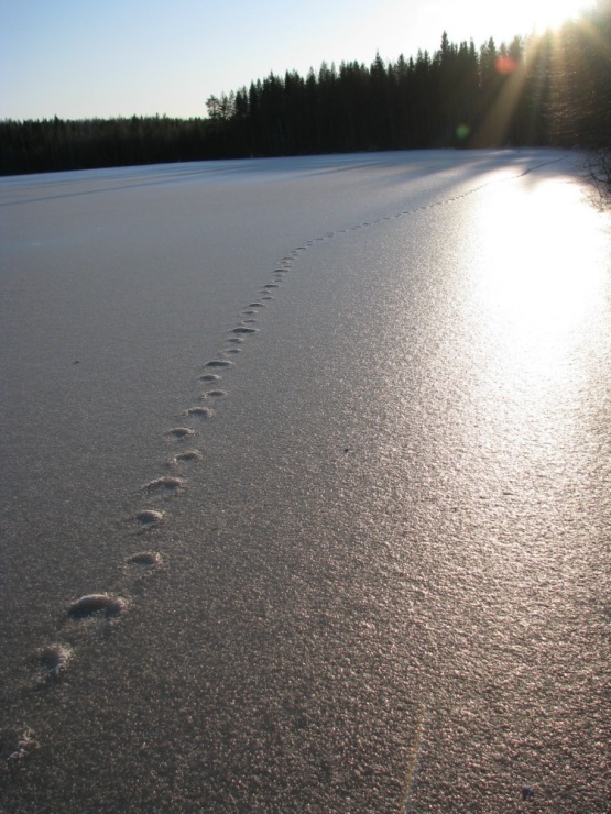 Выбрать ракурс и фотографировать следы на подтаявшем снегу было сложно, всё пестрит от растительности.