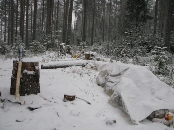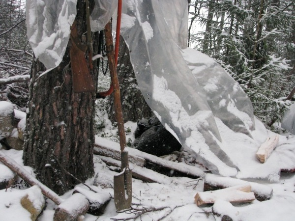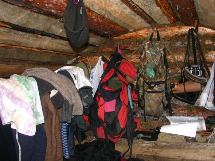 Когда избушка уже достаточно обжита, я даже в темноте знаю, где и чего у меня лежит. Обычно стоит протянуть руку и сразу берёшь нужный тебе предмет.