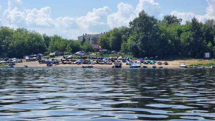 В семь утра палатка начала нагреваться под лучами солнца, но я решил поспать ещё немного и, расстегнув спальник, вновь погрузился в сон. К восьми часам внутри стало трудно дышать. Появилось стойкое ощущение, что я нахожусь в парилке. Выбравшись наружу, чтобы глотнуть свежего воздуха, я увидел судно на подводных крыльях проекта “Валдай”, которое на большой скорости прошло мимо, вскоре скрывшись за поворотом. Эх, мне бы такую скорость!