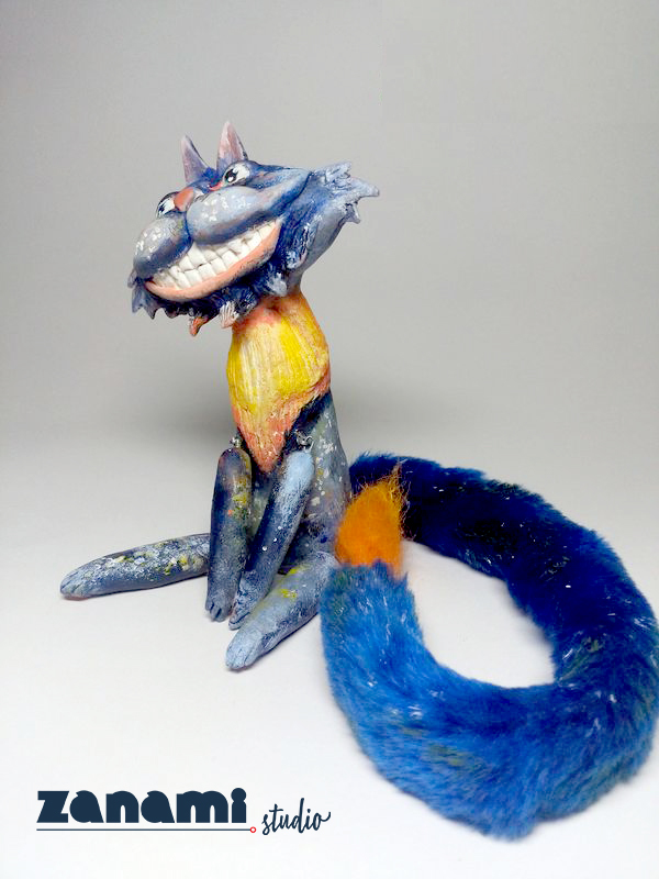 В пору увлечения лепкой и вдохновлённый Алисой, решил изготовить Чеширского кота. Но не того, который в диснеевском фильме, а своего, лампового и чтобы лапки болтались. После финишной покраски, применив все свои неординарные способности, мне удалось отломать ему хвост. В результате Чешир обзавёлся мягким, гибким и очень пушистым хвостом, который можно укладывать в любую сторону и даже носить как боа.