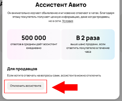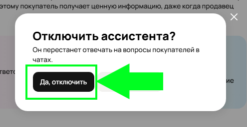 Далее приходим в ужас от того, что - о боже! - никакая ИИ-зараза не будет больше лезть в наши переписки с покупателями. И нажимаем "ДА, отключить"