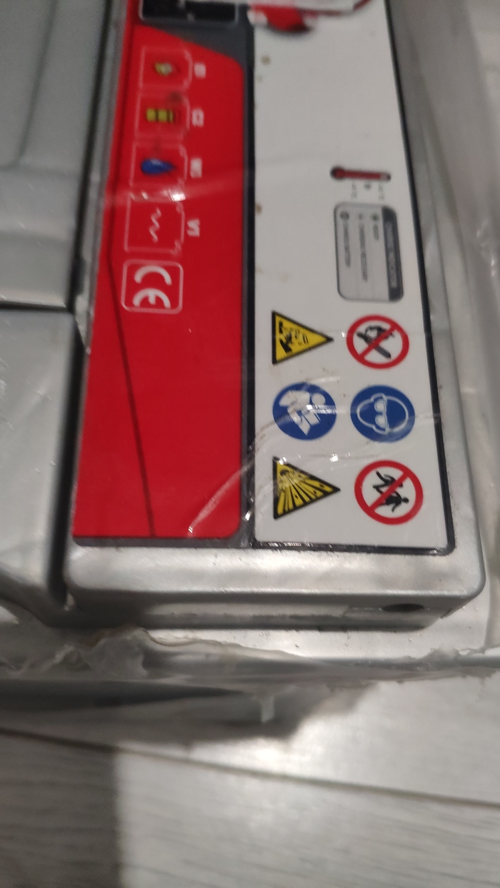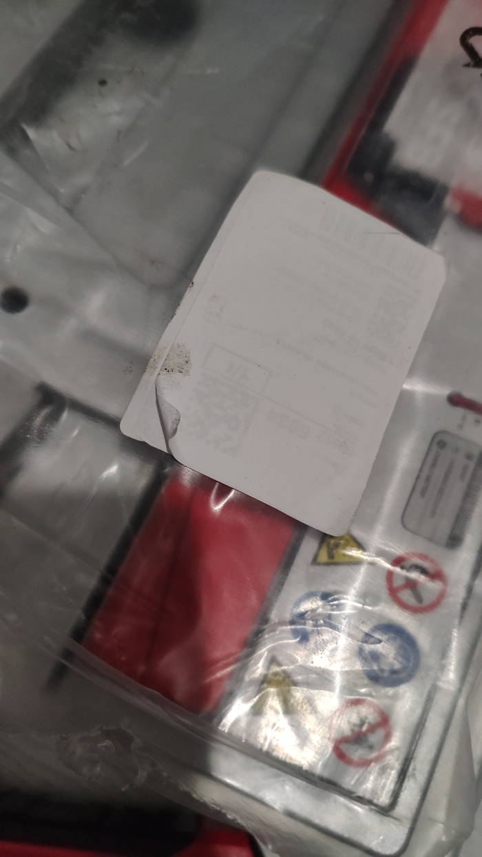 Как только зашел домой решил, как и положено, немного подзарядить акум. Подключил зарядник и удивился напряжению - 12,5 вместо ожидаемых 12.8 для трёхмесячного товара. Пригляделся к мелочам (которые в снегопад сложно разглядеть, да и не надо, всегда доверял этому магазину). И? Товар оказался очевидно бывшим в употреблении: