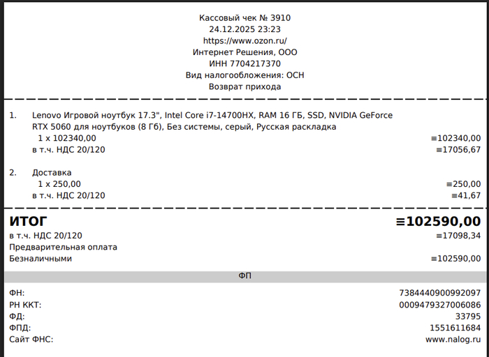 @Ozon , данная отмена и возврат денежных средств является ненадлежащим исполнением обязательств со стороны продавца (ООО "ИНТЕРНЕТ РЕШЕНИЯ"), так как были произведены БЕЗ МОЕГО СОГЛАСИЯ, в одностороннем порядке и вопреки моей воле на приобретение товара по согласованной и оплаченной мной цене. Сделайте подарок на Новый Год - начните соблюдать законодательство и исполните обязательства по договору надлежащим образом