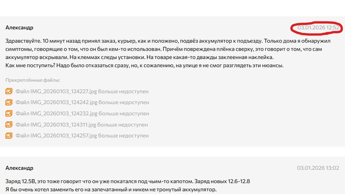 Купил у них 2 января «новый» аккумулятор. Привезли 3-го, на улице в снегопад я бегло проверил дату — вроде свежий. Забрал... С этого и начались все проблемы.