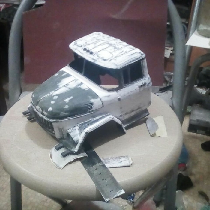 Кабина печаталась на fdm принтере, толщина слоя 0,36, поэтому печать низкого качества. Перед покраской детали прошли подготовку - шлифовка, грунтовка, полировка, покраска.