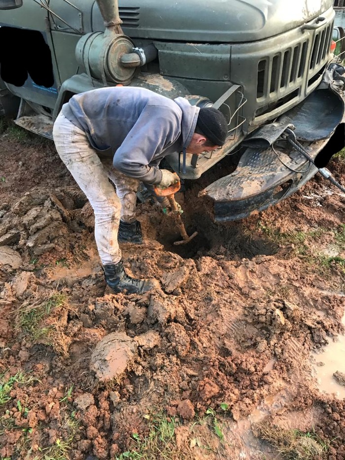 Три ведущих моста и понижайка не особо спасли. Стоило только заехать на сазыпаную 2 недели назад траншею, как машина легла на мост.