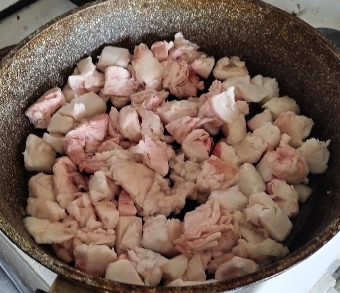 Сначала долго искала несолёное сало. Это прям квест я вам скажу.... Затем не очень приятное занятие - расчленёнка этого сала😅
