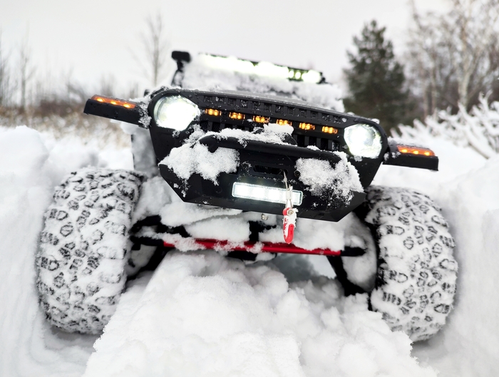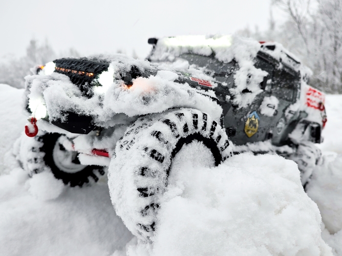 И дальше нам оставалось ходить со спутниковым приёмником и контроллером по указанным координатам и топтать снег! По сути контроллер стал для нас навигатором. Команда шла за нами, делая дорожку более выраженной. После чего в дело пошла краска.