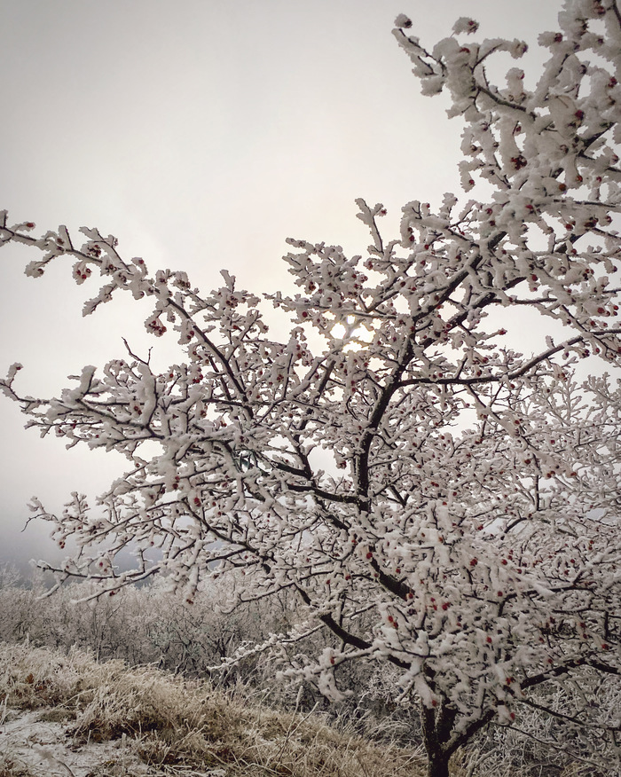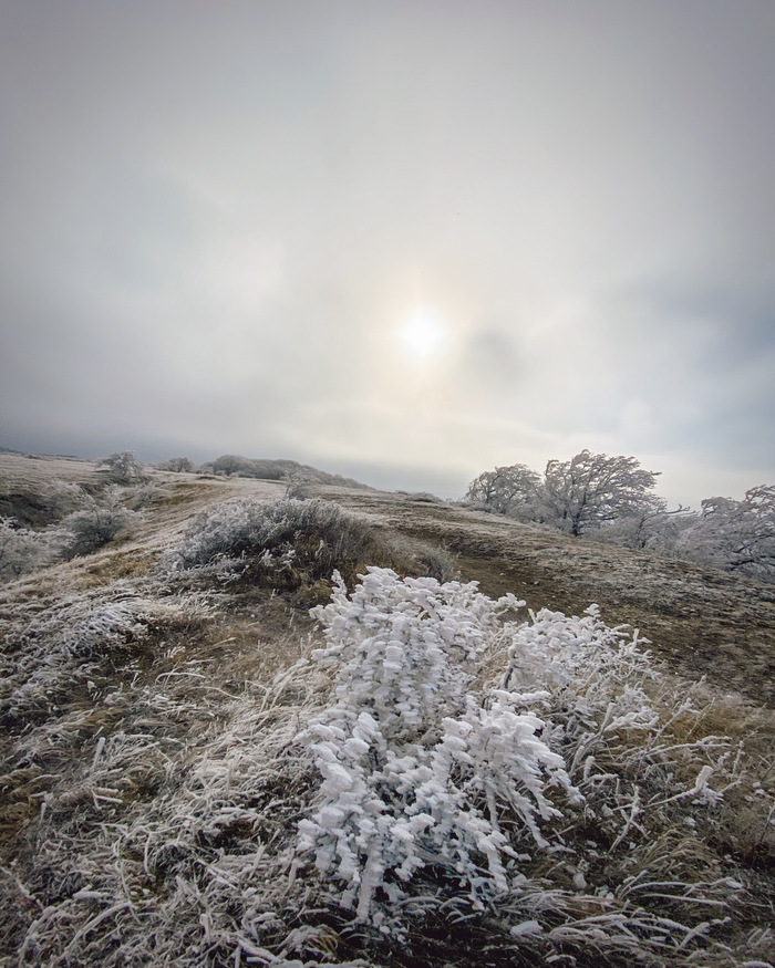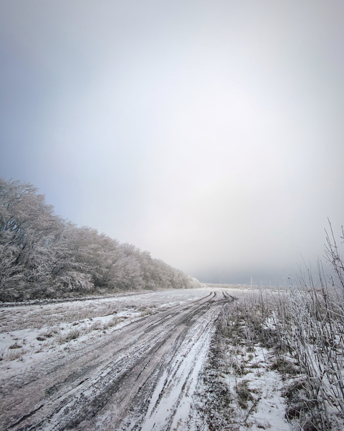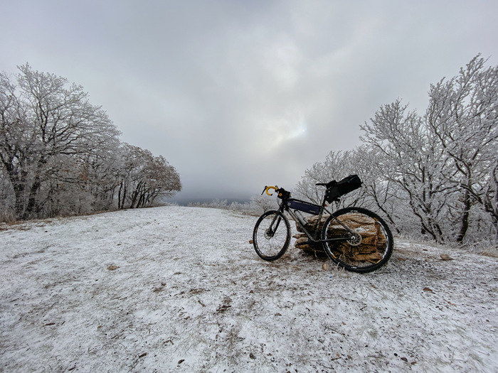 Потрясающая сегодняшняя поездка. Забыл и про полный термос кофе, и про сладости, и про еду, и про рабочий телефон. Ехал, восхищался, фотографировал, протирал запотевшие очки и ехал дальше. Холодно, ветер с порывами до 23 м\с поднимающий велосипед над землей и пытающийся его вырвать из рук. И всё такое колюче-белое и искристое.