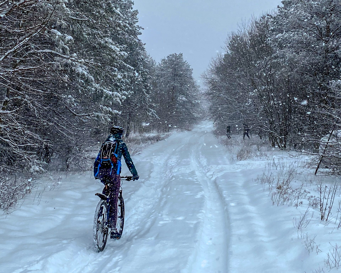 Шикарная зимняя поездка. Мягкий пушистый снег вкусно хрустящий под колёсами. Огромные снежные хлопья медленно опускающиеся с неба. Горячий чай в термосе. Штиль и потрясающая тишина зимнего леса.