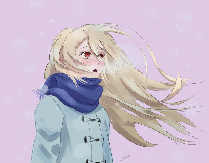 Сегодня зима ассоциируется с праздниками, подарками и развлечениями, а выпавший снег радует не только детей, но и взрослых. Но для наших предков эти месяцы были тяжелейшим временем борьбы за выживание, борьбы с лютым холодом и нехваткой еды. Поэтому дух зимы на моем рисунке красив, но безжалостен, слеп, как и полагается стихии, а одежда его украшена мелкими косточками. Это не какой-то конкретный персонаж фольклора, а персонификация зимы, как я ее вижу.