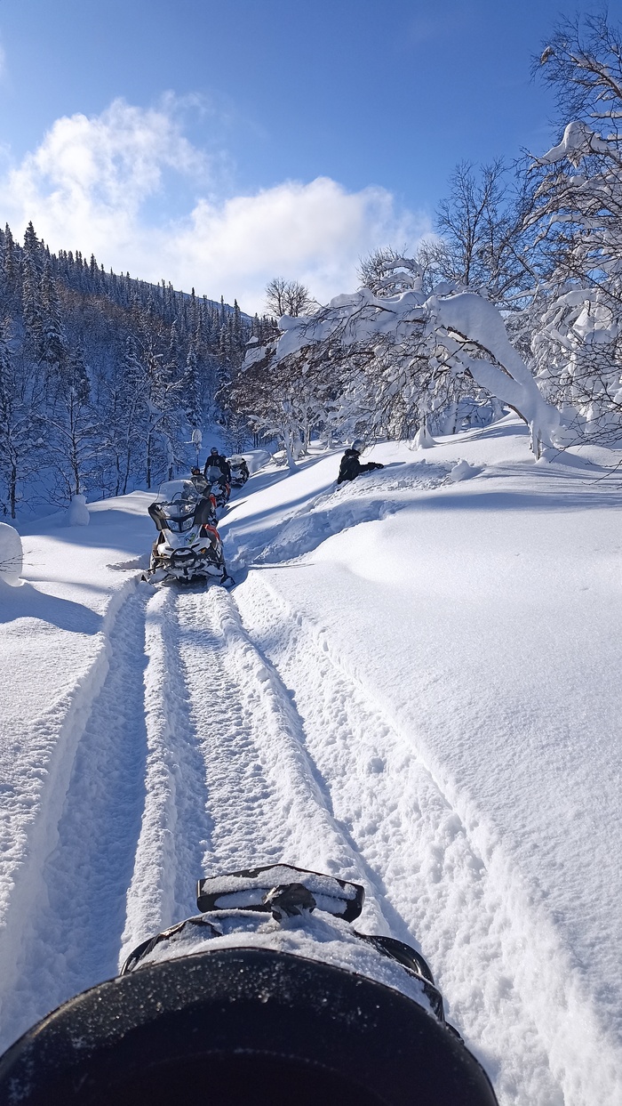 На утро следующего дня началось наше приключение снегоходное. За нами приехал трансфер и отвёз нас на завтрак (это всё включено в путевку). После завтрака нас отвезли на базу. Выдали, у кого не было, экипировку. Подписали договора и вышли знакомиться с техникой и нашим гидом Фёдором.