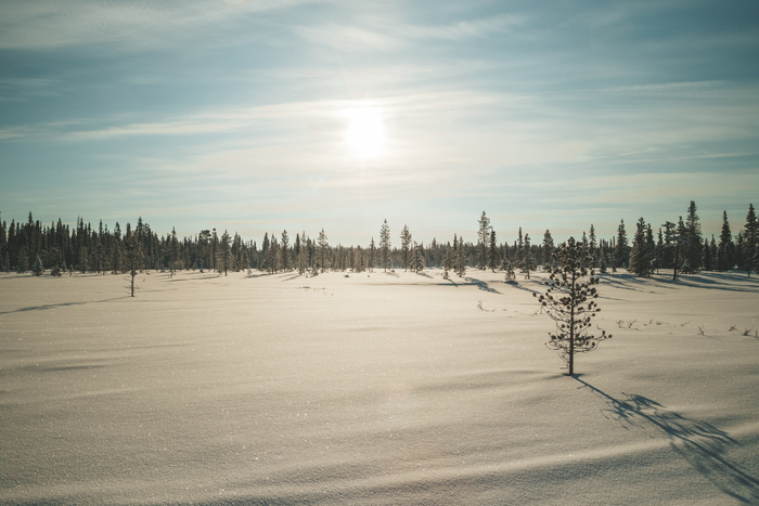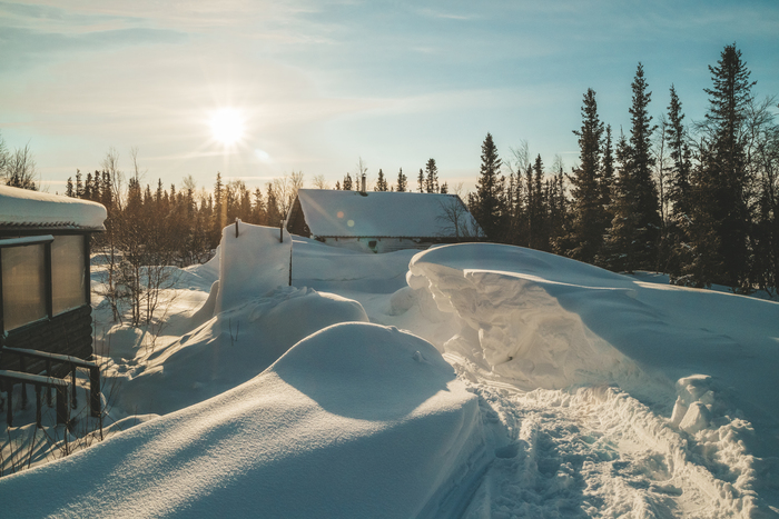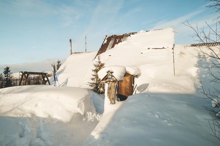 Утро началось с того, что прозвенел будильник (точно не помню, но где-то в 8:30). Глаза пролупил, смотрю в окно, а там солнце светит. От этого настроение просто космос стало. Собрали вещи, позавтракали. И пошли к снегоходам упаковываться.