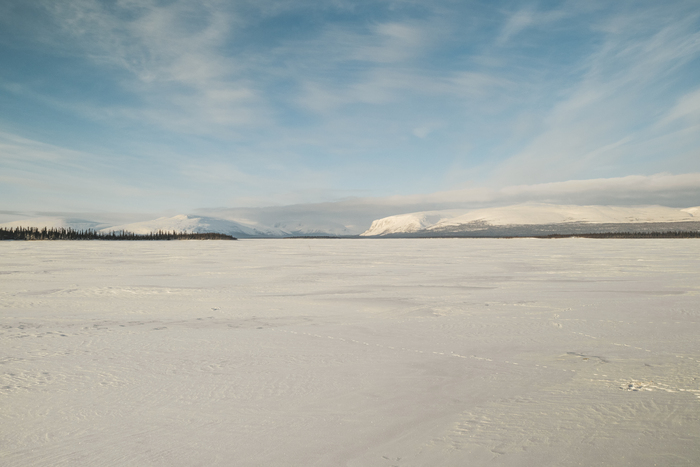 Спустя часа три мы выехали на следующее озеро Ловозеро. Это озеро по размерам было по-меньше, но дорога по нему была ужасной. Снега фактически не было на нём(из-за ветра). Ехали как по бетону, и фактически через каждых метров 20, а то и чаще, заструги. Минуя озеро мы прибыли к месту нашего ночлега. Приехали мы в Русскую Лапландию, Эко-отель Юлинская Салма. (В это место можно добраться лишь двумя способами: 1) на снегоходах зимой. 2) на катере по озеру летом. )