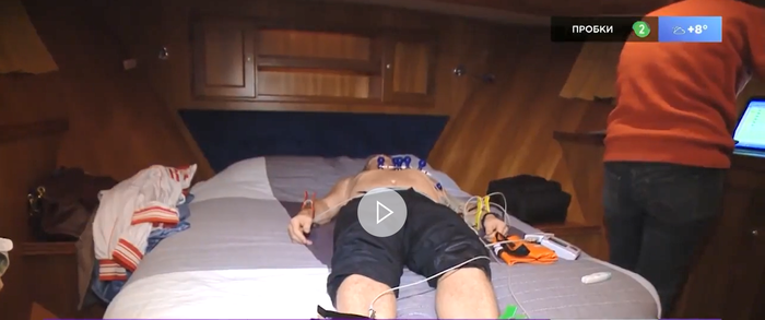 горячий душ, просторная кают-компания, гидроцикл для оперативности в случае возникновения чрезвычайных ситуаций. Один раз гидроцикл пришлось реально задействовать: когда пловец ушел на дистанцию без страховочного буйка. В считанные минуты буй был доставлен спортсмену.