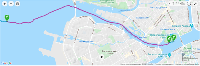 Четверо пловцов-моржей, два дяди и две тети, будут по очереди по полчаса плыть в воде температурой 10-11С. Трое из четверых специально прилетели на проект: из Ульяновска, Березников и Мурманска. Впервые за много лет согласован официально плавательный маршрут прямо из Петропавлоской крепости, обычно в Малой Неве плавать нельзя от слова "совсем", это судоходный рукав реки. Вот их трек по Гармину.