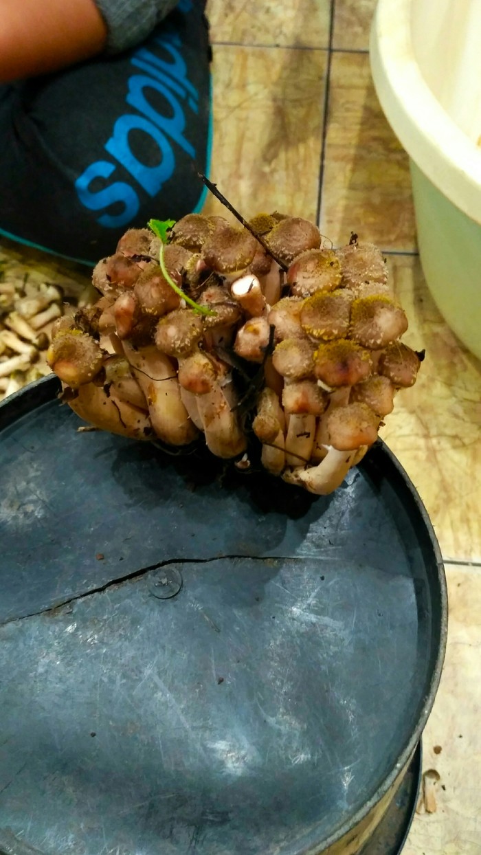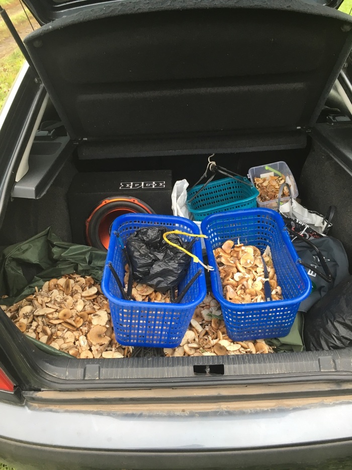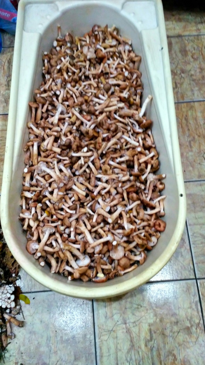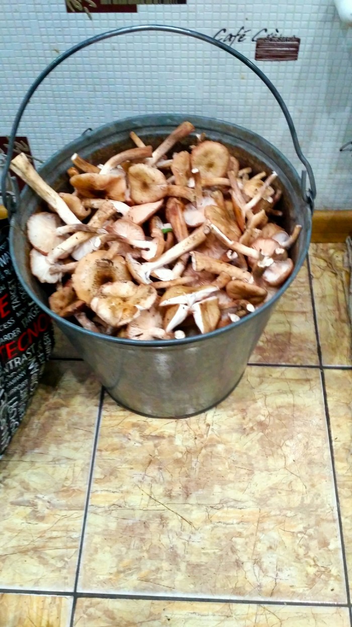 Бабушка три дня подряд покупает на рынке ведёрко грибочков — опят. Купит ведёрко, вечером переработает, назавтра снова ведёрко покупает — зима длинная, семья большая. В грибах вся кухня, вся квартира пропахла грибами. Бабушка не унимается, на третий день снова приносит с рынка ведро грибочков. Мелкая не выдерживает: