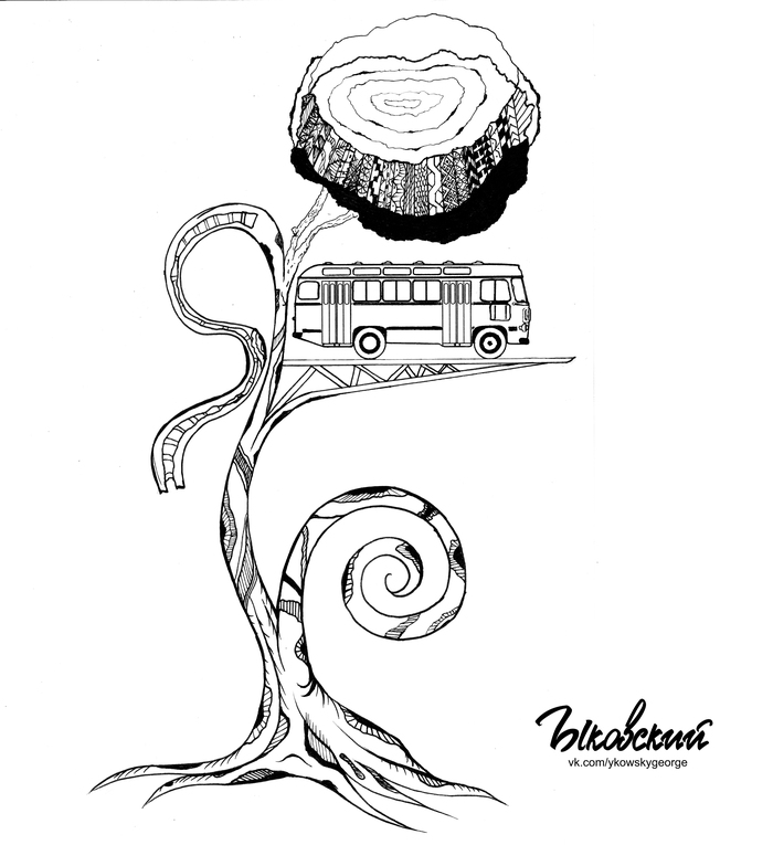 Третья часть серии работ тушьнябрь. С начало я думал остановится только на Лиазе, но решил сделать всё-таки серию работ посвященных отечественному, общественному транспорту.
