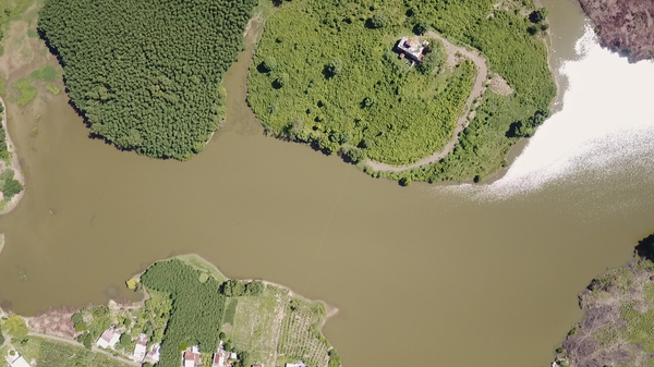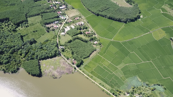 Озеро раскинулось среди рисовых полей и наделов местных крестьян.