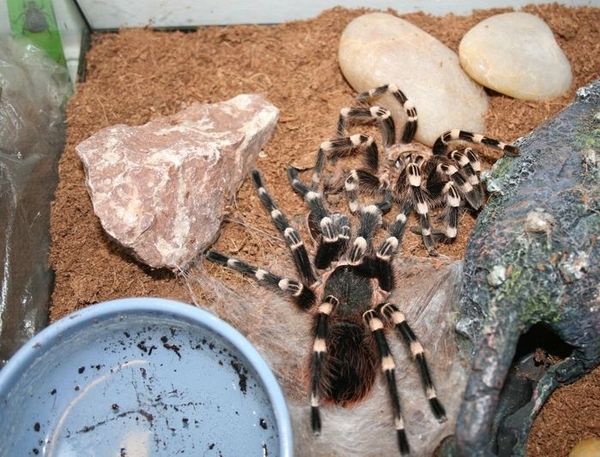 Как и все пауки, тарантулы иногда проходят через линьку — у них отслаивается старый скелет и нарастает новый. В некоторых случаях животное застревает в старой оболочке, и тогда от хозяина требуется вся его деликатность и осторожность, чтобы помочь пауку снять опостылевшие «одежды» — если этого вовремя не сделать, животное может погибнуть.