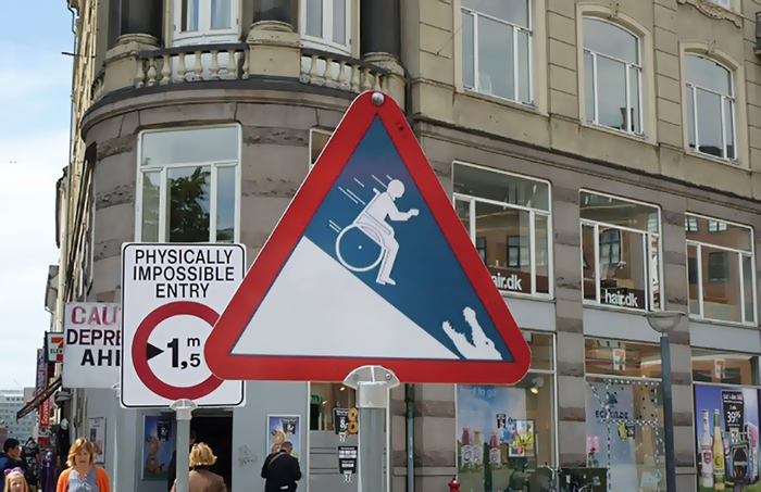 Едем дальше. Вернее, медленно идем, как и люди, привыкшие неотрывно смотреть на экраны своих смартфонов и планшетов, даже переходя проезжую часть. Уверен, многие из нас задавались вопросом, что же такое важное постигает пешеход, уткнувшись в экран своего мобильного устройства, переходя дорогу. К примеру, власти Швеции решили побеспокоиться о безопасности невнимательных пешеходов заранее, установив на дорогах соответствующее обозначение. Кстати, в европейских городах, особенно в исторических центрах, мощенных брусчаткой, встречается дорожный знак, понятный всякой моднице. Он предупреждает женщин на каблуках о том, что те могут повредить свою нетуристическую обувь.