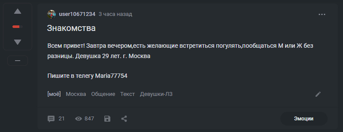 Но сегодня (04 мая) появился уже пост от этой Марии: Знакомства