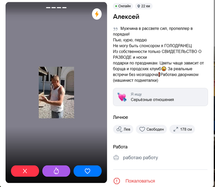 Даёте короткую самопрезентацию: без личных данных, но с акцентом на характер. Например: «чаще всего шучу и люблю нестандартные беседы».