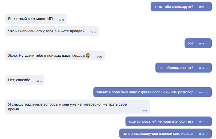 Отсюда и самое забавное. Девушка правда может считать парня, которого рассматривает на второй или третий формат отношений, круче, чем того которого на первый. То есть она может весело трахаться на первой встречи с парнем, которого только что увидела, потому что рассматривает его только для секса, но при этом, когда захочет стабильных отношений то секса на первой-второй-пятой встречи может уже и не быть, так как ей будут важны другие качества от парня и вот так сходу, она может его уже и не хотеть)