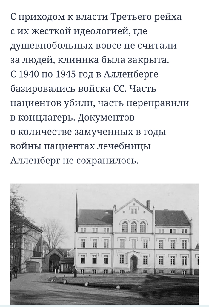 Краткая история бывшей психиатрической лечебницы Восточной Проссии: