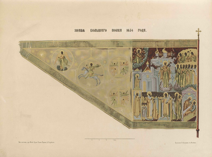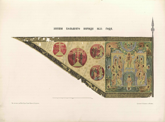 Когда стяг изнашивался, его отвозили в Оружейную палату. Там содержался целый штат живописцев специально для знамен. Они делали его копию и отправляли обратно. Кстати, туда же отвозили стяги по окончании сражения до следующей битвы. В некотором смысле, это можно считать прообразом музейного хранения.