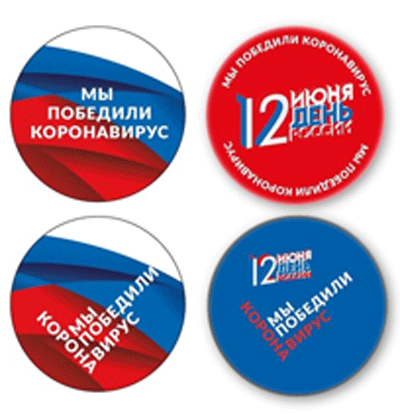 Дабы придать больше патриотизма, в этом году были разработаны наклейки и значки с надписями "Мы победили коронавирус" - на фоне российского триколора. Их будут раздавать к 12 июня тем, кто успешно победил болезнь.