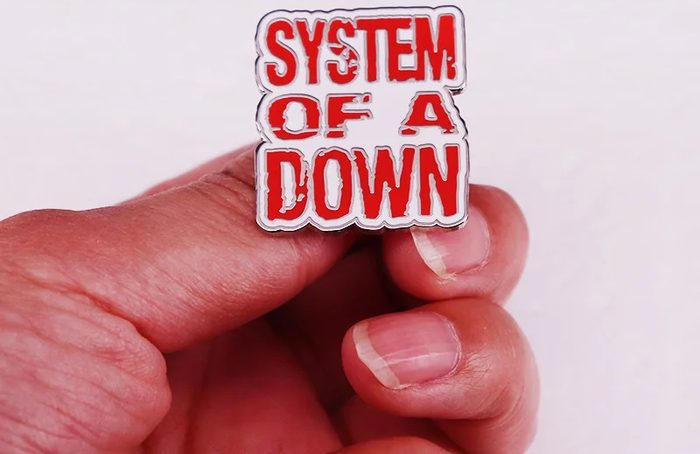 Эмалевые булавки с логотипом группы Ac Dc. Ссылка на неё