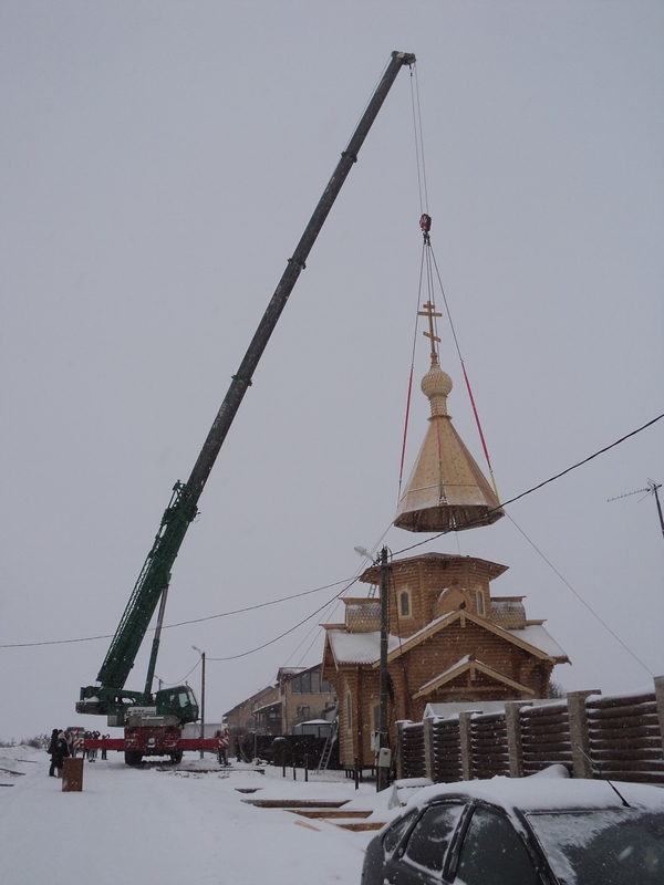 И вот наконец настал день, когда препятствия были устранены, и кран поднял шатер с главкой в проектное положение: