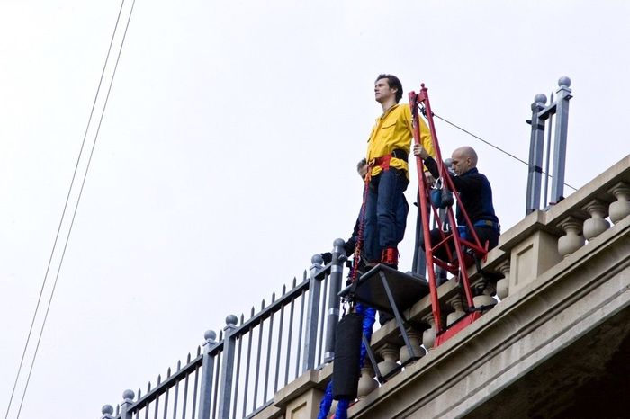 Прыжок на тросе Джим Керри выполнил с того же моста, что и герои сериала «Клиника» (2001-2010) в одной из серий.