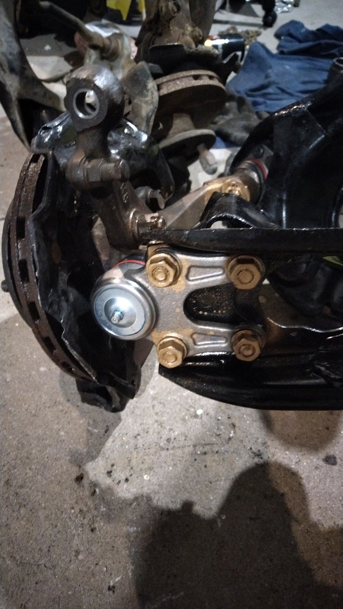 Нашли на авторазбоке за 11 тыс. ступицы в сборе с рычагами и суппортами. Ревизия показала, что всё надо обслуживать кроме рычагов, на них сайлентблоки все живые. Ступицы перебрал, сальники поменял, подшипники обслужил (оказались живые), суппорта долго мучил чтобы выдавить тормозные цилиндры ( компрессор, бензин и костёр помогли только один выковырять, во второй пришлось вваривать болт.). Естественно сразу заменил шаровые, старые были так себе. Покрасил рычаги и вуаля)))