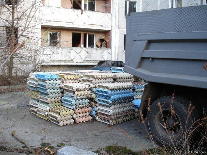 Во избежания массового мародерства в Припяти сделали следующий шаг: все вещи из квартир захоронить. В домах оставили только габаритные предметы: шкафы, «стенки», пианино, кухонную мебель и другое.