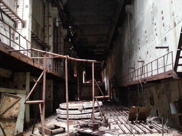 Здесь мы немного побродили по машинному залу, где впоследствии должен был быть установлен реактор, полазили по технологическим коридорам и пультовым комнатам. Кстати, там нам рекомендовали соблюдать перчаточно-масочный режим).