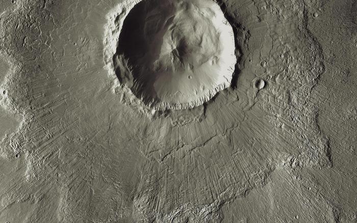 Фото: NASA / Марсианский кратер Баколор, диаметром 21 км. Это составное изображение – оно составлено из снимков, сделанных камерами прибора THEMIS в период с сентября 2002 по октябрь 2005 г.