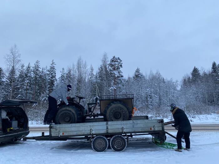Ррразгружаем Сатану! Мы быстренько проверили по картам - от ближайшей дороги до места примерно 3 км. Есть какие-то просеки, вроде бы ведут в нужную сторону. План такой: на вездике мчим по просекам настолько близко, насколько сможем подобраться к зонду. дальше пешком. Надежно.