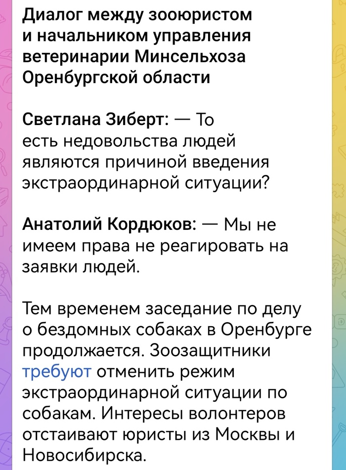 В последнее время телеграм заполонила дюжина каналов зоорадикалов с массовыми призывами к ненависти и вражде. Регулярно выкладываются посты с призывами срывать и дестабилизировать работу органов отлова и законотворческую деятельность власти. На некоторых из ресурсов, зоошиза распространяет клевету и персональные данные их противников.