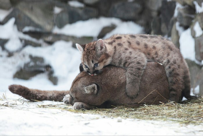 У трёх самок манулов в Новосибирском зоопарке родились 16 детёнышей. Они уже выходят на прогулку из своих укрытий, но пока под присмотром мам.