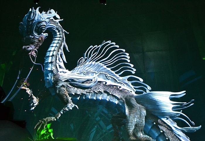 Вкратце поясню сюжет этого лазерно-компьютерно-графического шоу (фрагмент шоу можно в конце поста посмотреть, снял что мог) - это история о том, как дракон создал мир и всё в этом мире, что жизнь началась в воде, и в конце дракон осыпает всех зрителей золотыми монетами...