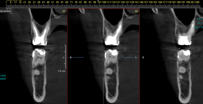 Случилось так, что 7ку я пломбировал несколько последних лет, примерно раз в год раза 3 точно (откалывался) с надеждой поставить наконец коронку и месяцев 8 назад решился, как вдруг стоматолог предложил перед установкой сделать кт на всякий, проверить чтоб не было того самого страшного что случилось. В итоге обнаружено было 2 кисты на соседних зубах и + началась боль в районе 7ки, как будто зуб чешется внутри при накусывании, приеме твердой пищи. Ходил по 3-4 стоматологиям на консультацию, часть советовали удалить, один дал 50\50, ещё один вообще не дал гарантий, вот такая вот хрень с кистами, теперь понимаю почему.