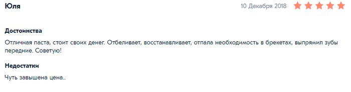 вот реально, многие думают, что 800-1000р для зубной пасты это дорого. Во-первых, у кого есть машина, посчитайте, сколько вы тратите на ТО? маслофильтр, воздушный фильтр...маслице....там далеко не 1000р. И ведь не жалко же...это ж машинка любимая! У кого нет машины, посчитайте любимое хобби, или сигареты. Девушки могут прикинуть косметику...сейчас помада нормальная от 2к.... 1000р - не дорого! Если не мазать как масло на бутерброд, а как положено - горошинку. Свои зубы дороже, это я понял только после 35 лет, когда потратил на лечение зубов не одну сотню тысяч....и полным перелечиванием, удалениями, имплантами, коронками.... и начал пользоваться нормальной пастой (это у которой у автора очень мятный вкус). Вот нормальный имплант выходит под сотню, а если зуба давно нет - там еще наращивание кости, это еще плюс денег... по 1000р в месяц на пасту (на всю семью) - 12 тысяч в год, за 10 лет - 120 тысяч. это дешевле чем имплант. Ну, или можно дальше мазать жижу за 100р на свои зубы.