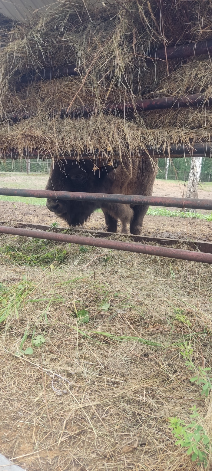 Далее решили ехать в окский биозаповедник, зубров поглядеть.Еще километров 30. Ну раз уж поперлись. По пути очаровательные деревушки.У каждого дома колодец-журавль.Мы живем напротив ,через Оку,у нас давно водопровод и газ и колодцы раньше были обычные, а ту такое роскошество. В общем достигли цели, заплатили небольшую мзду и проследовали к лохматым коровам. Их две. Мальчик и девочка. Это которые для просмотра. Мальчик все время кушал и снять его в полный рост не удалось. Девочка молодая ,3 годика, не кокетка. Всю себя показала, каким боком только не повернулась. Даже проводила до конца загона. Молодчина. Остальные 35 особей в свободном выгуле, выходят когда захотят🤷.Еще есть журавли там, с которыми темнейший летал, но мы не успели на них посмотреть, только гомон слышали. Подводим итоги.Я живу рядом со всей этой прелестью 47 лет. Поседел от натуги. Столько прелестей оказывается совсем рядом, да каких! Затраты копеечные. И на кой мне эти моря и горы, тем более в горах я служил, нихера хорошего. Я на равнине живу.В общем рекомендую. Тем более мы ж патриоты все, правда?