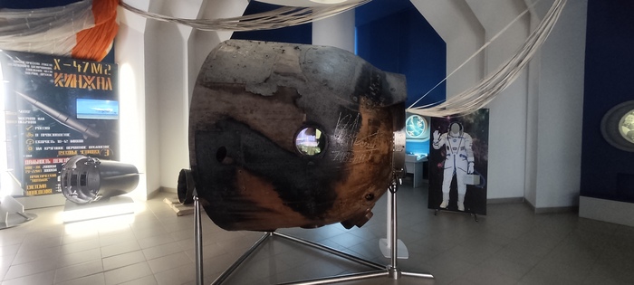 Настоящая спускательная капсула космонавтов, реальная обугленная, подарок музею.