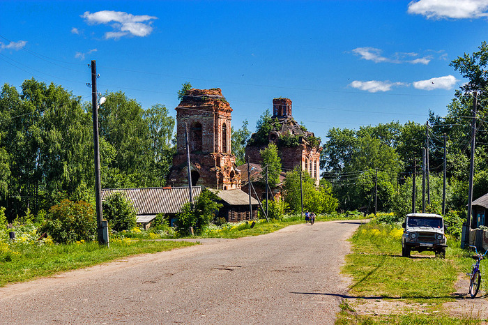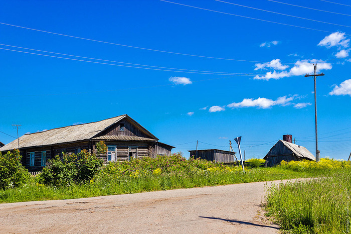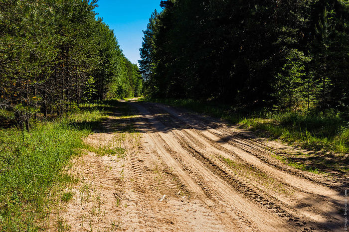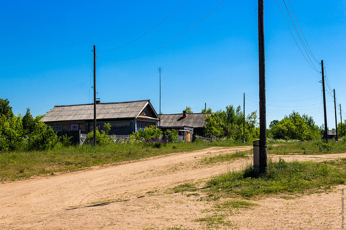 Я поблагодарил мужика и поехал в Сезенево. Грейдер существенно улучшил песчаную дорогу, и по ней почти везде стало можно ехать, так что до села я добрался меньше чем за два часа. По пути то и дело встречались остатки брошенных деревень, и только в самом Сезенево протекала какая-то нормальная жизнь. Здесь я нашёл колонку, набрал из неё воды и основательно умылся.